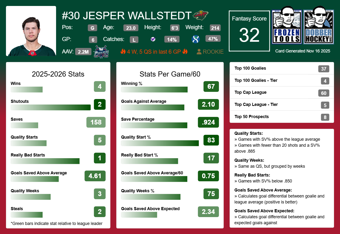 Stud: Jesper Wallstedt, MIN (14% Rostered)